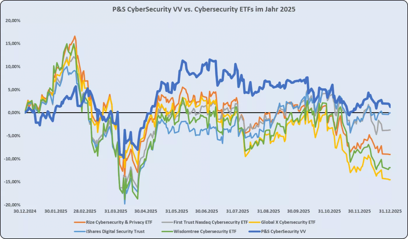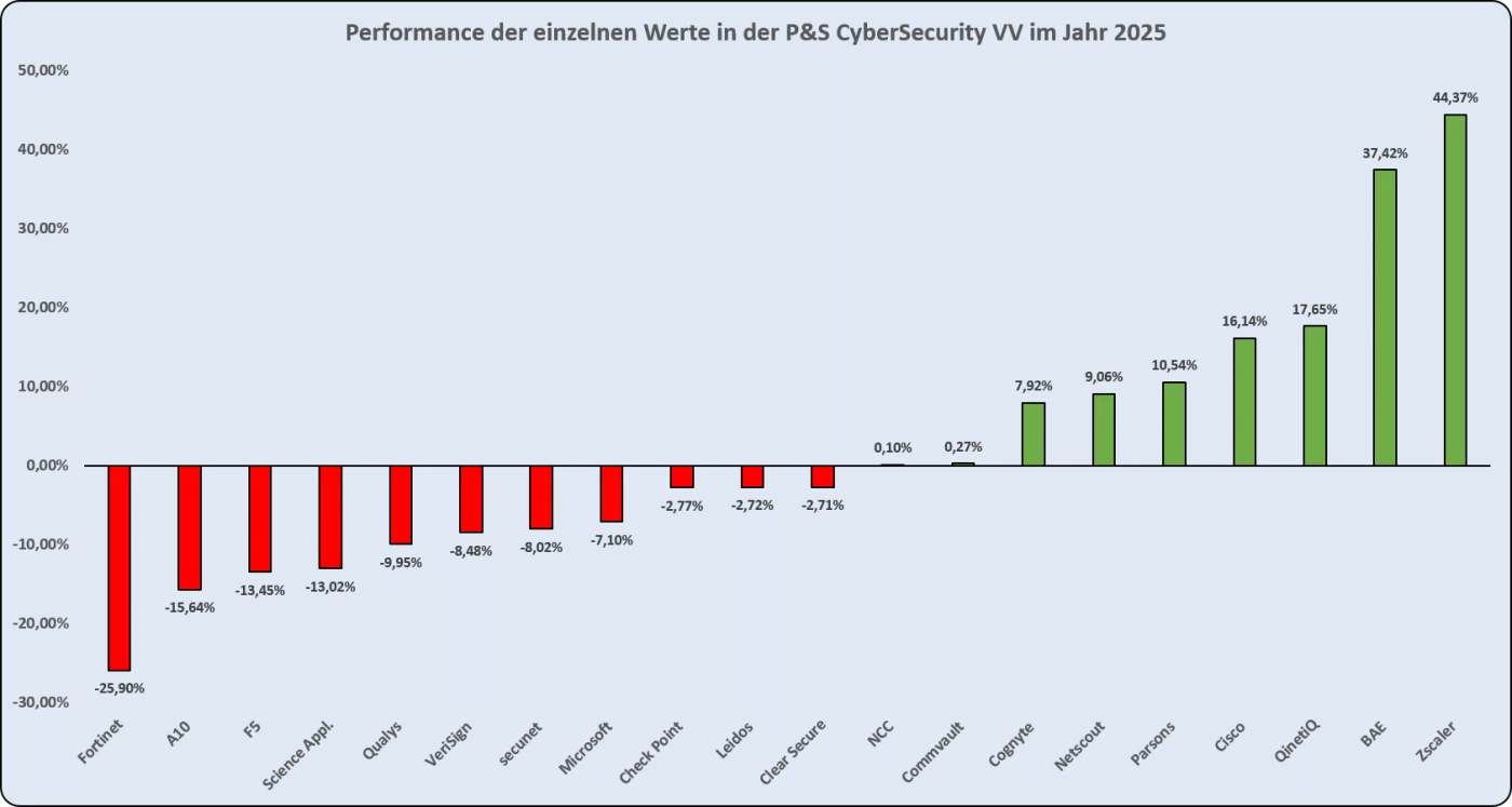 Performance der einzelnen Werte in der P&S CyberSecurity VV im Jahr 2025